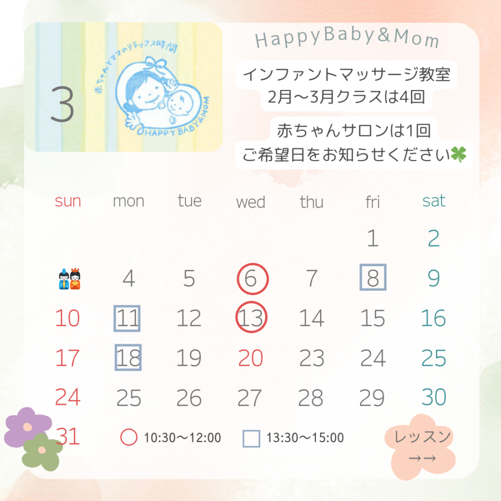 インファントマッサージ4回と赤ちゃんサロン1dayの参加お待ちしています。